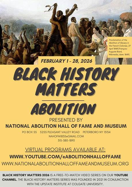 The first registration for the Fourth Annual Abolition Walk was from James M. Jackson from Amasa, Michigan, who wrote: 190 years ago, my great-great-great grandfather James Caleb Jackson was one of the 104 who made the trek from Canastota to Peterboro. Although I'd love to be around for the 200th anniversary, actuarial tables suggest that might be pushing my luck. Jim, his wife, sister, and children will be walking in the footsteps of his ancestor on Saturday, October 11, 2025, along the...